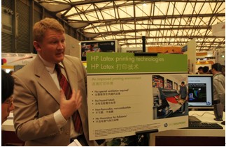 The marketing specialist from `HP` is spreading their LATEX printing technology